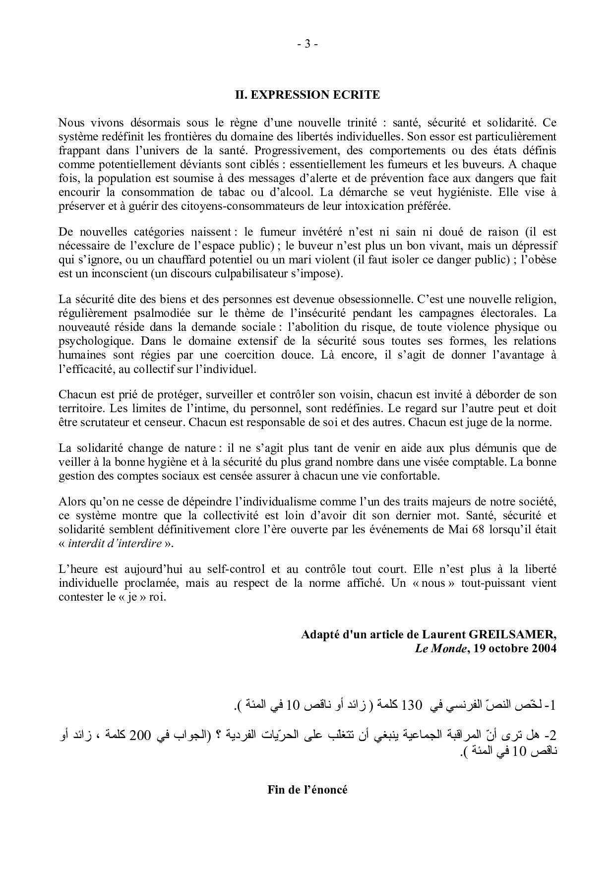 CCP 2005 Langues vivantes (Obligatoire)
