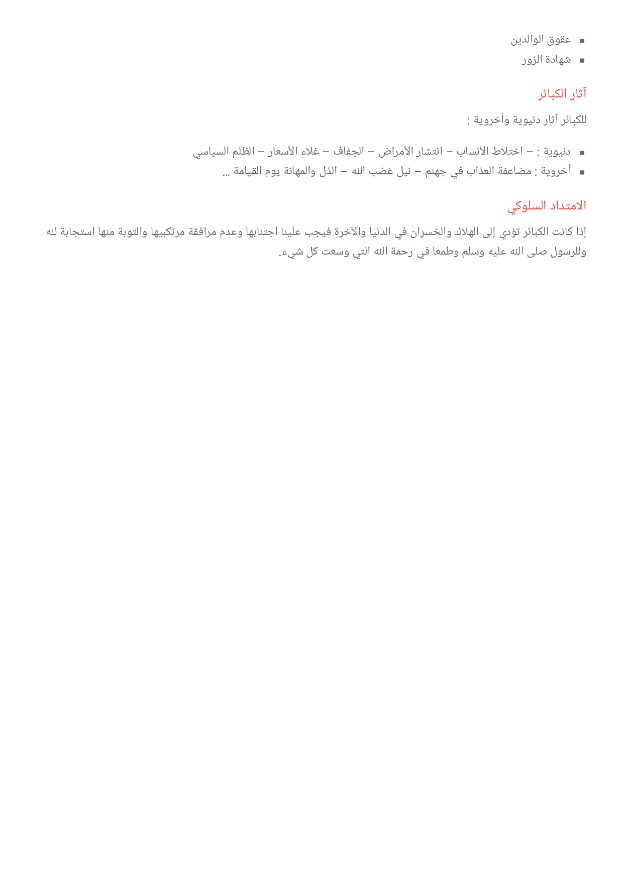 حق النفس: اجتناب الكبائر والموبقات (فضاء التربية الإسلامية)
