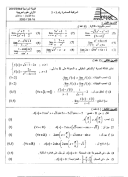 الفرض 1 نموذج 5 - الرياضيات أولى باك علوم تجريبية الدورة الثانية