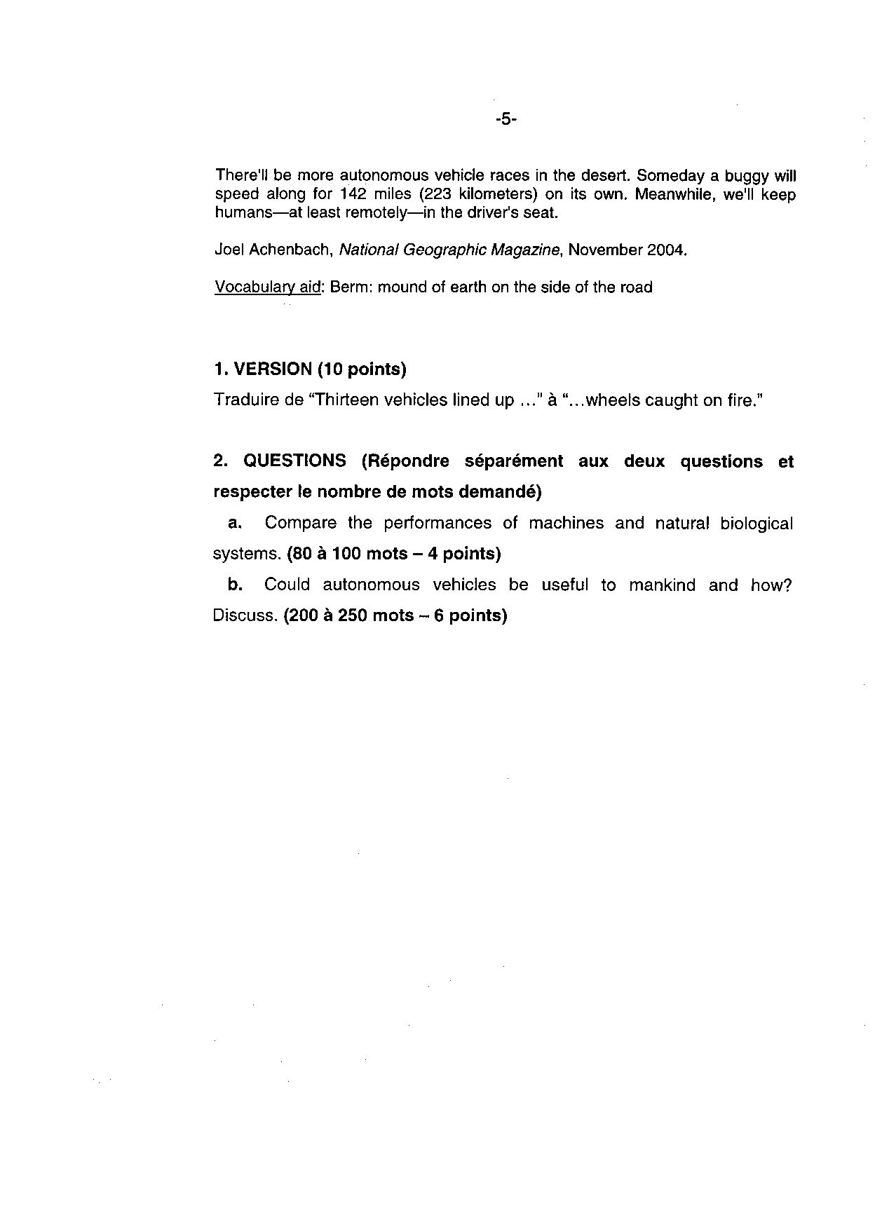 Banque PT 2005 Langues vivantes A