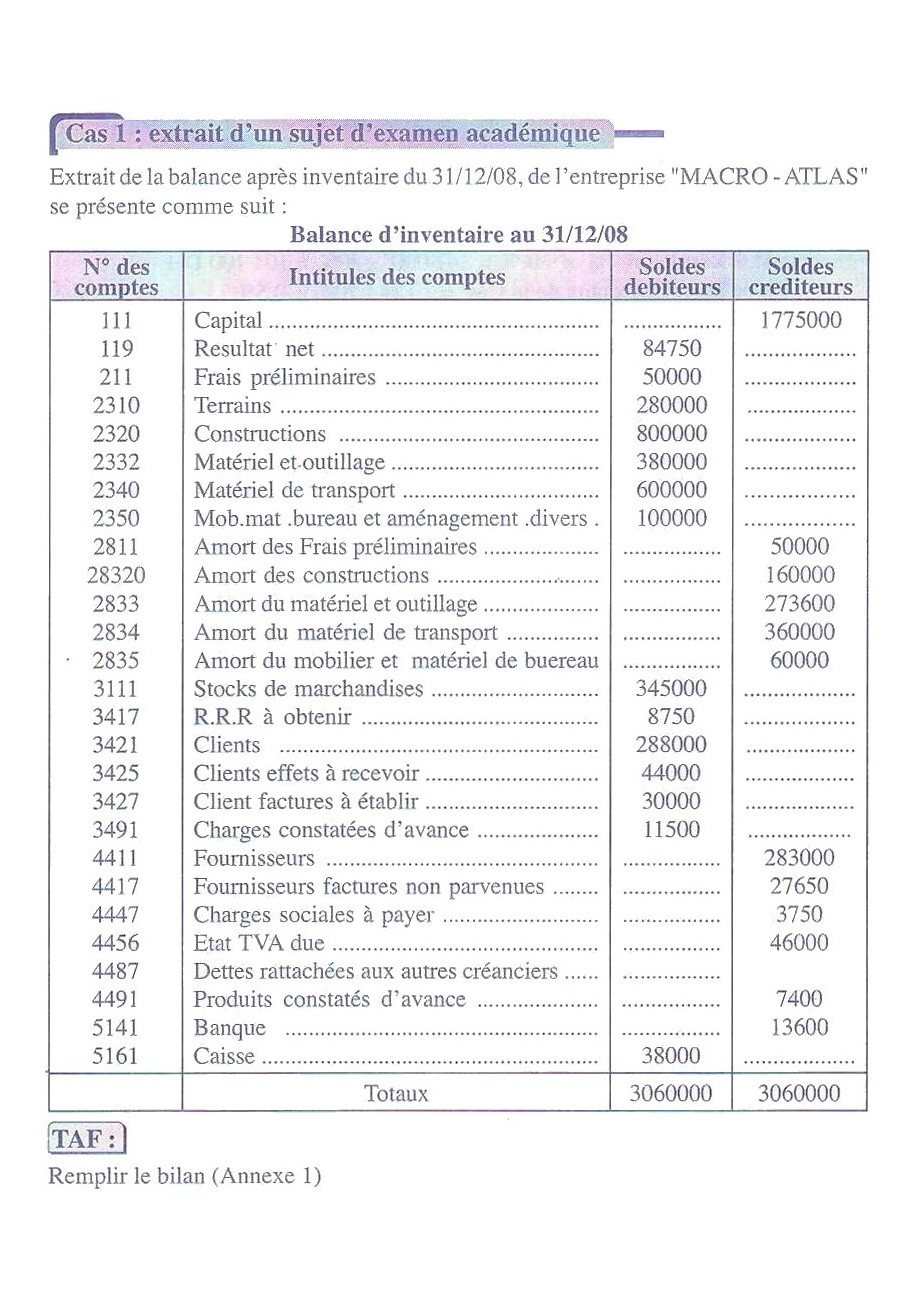 Cas de Synthèse 1 Compta 2 Bac Eco-SGC - Sujet