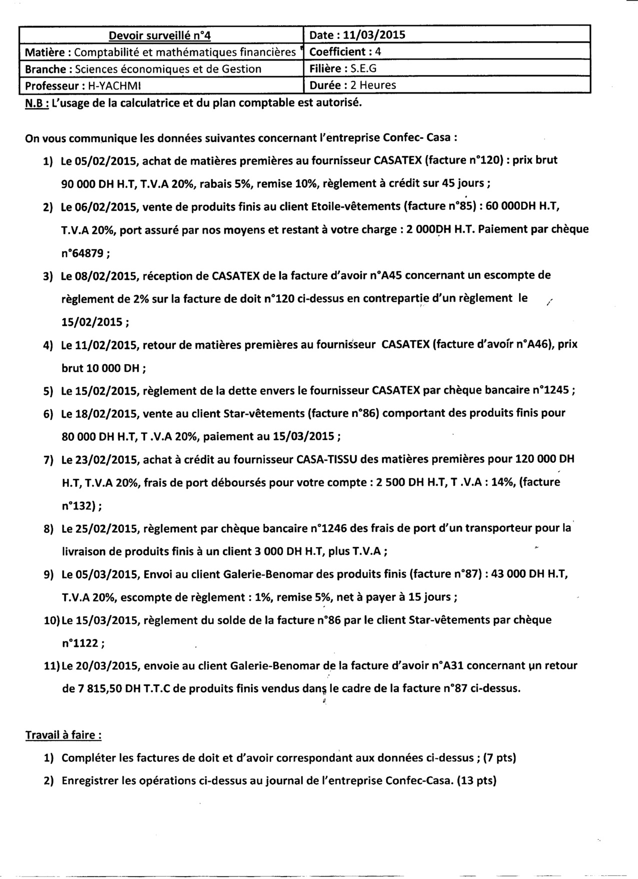 Devoir 1 Modèle 5 - Comptabilité 1 Bac Eco Semestre 2
