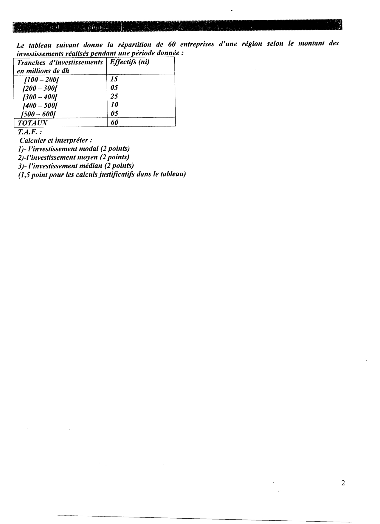 Devoir 1 Modèle 6 - Statistiques 1 Bac Eco Semestre 2