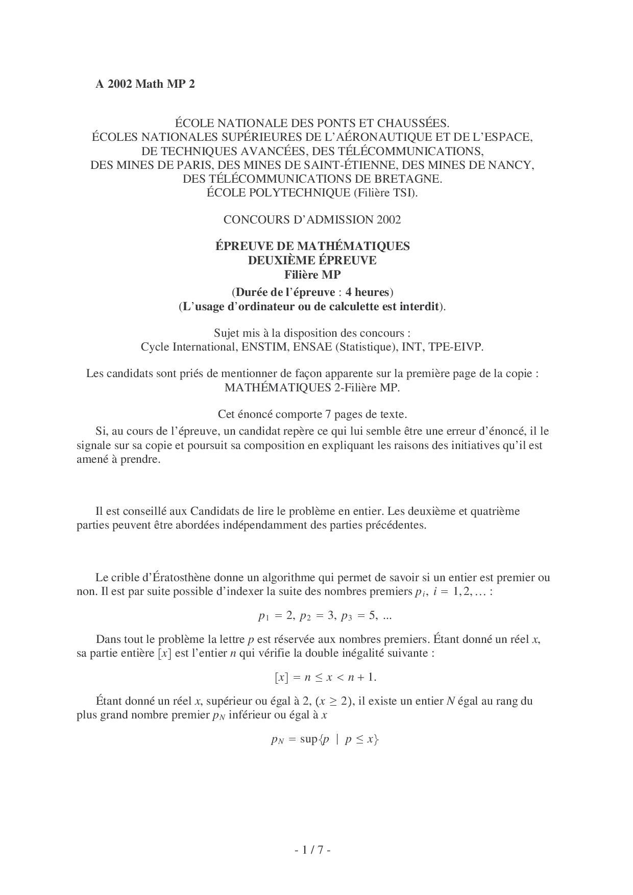 Mines-Ponts MP 2002 Maths 2 Enoncé