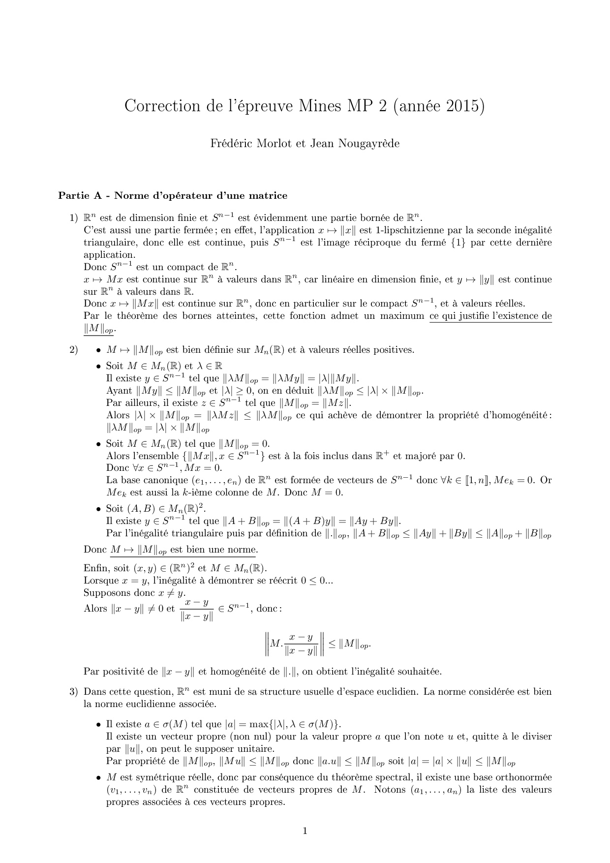 Mines-Ponts MP 2015 Maths 2 Corrigé