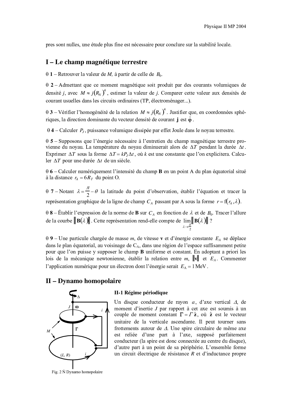 Mines-Ponts MP 2004 Physique 2 Enoncé