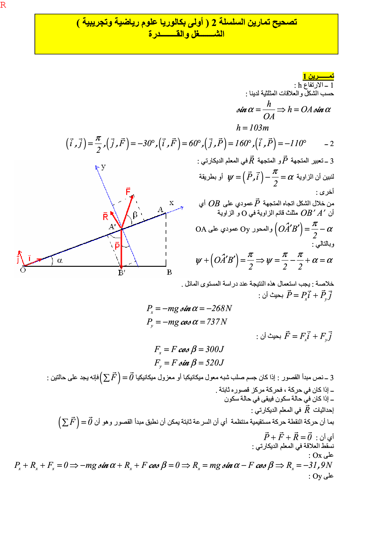 شغل وقدرة قوة - تصحيح سلسلة التمارين 1