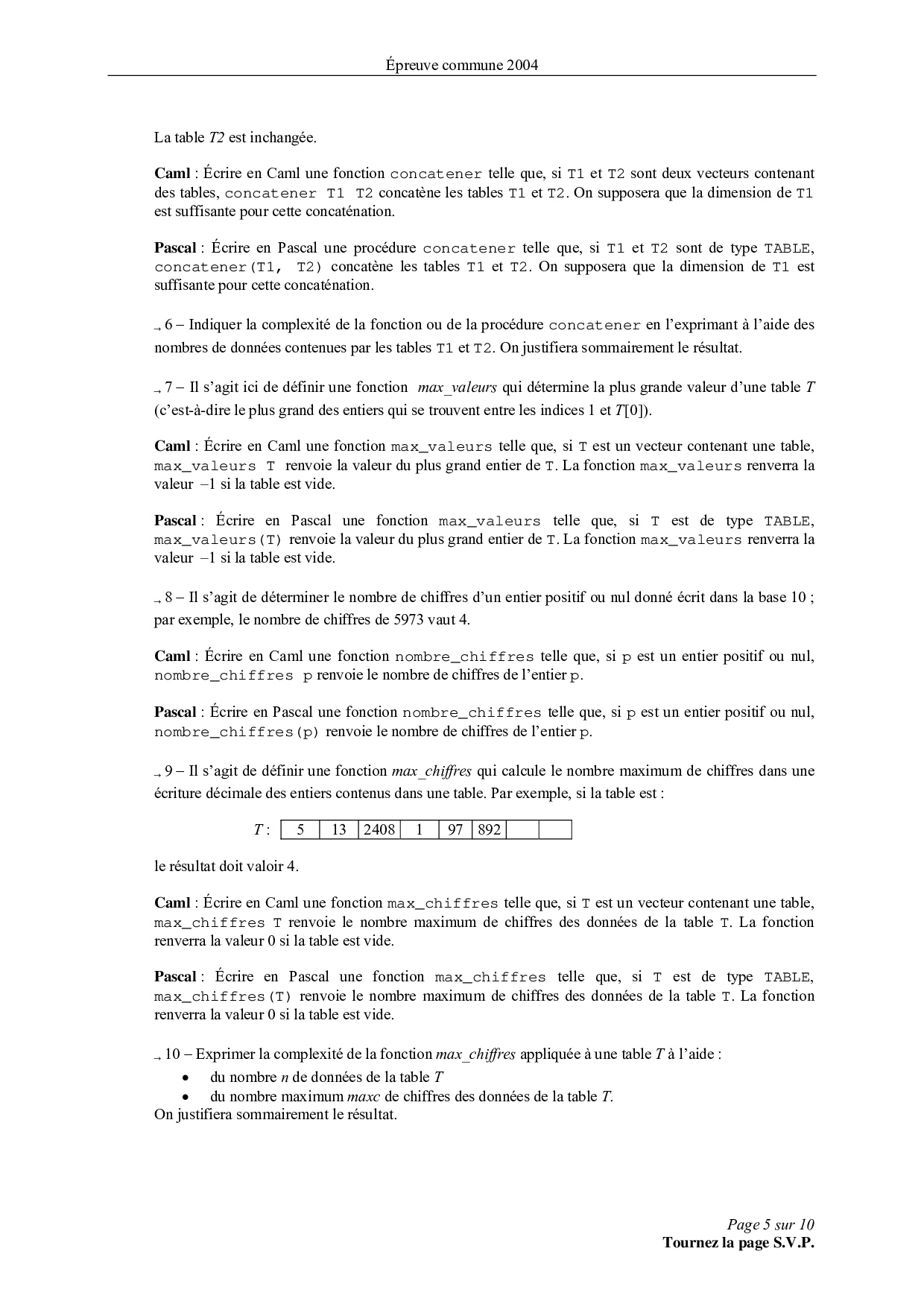 Mines-Ponts MP 2004 Informatique Epreuve