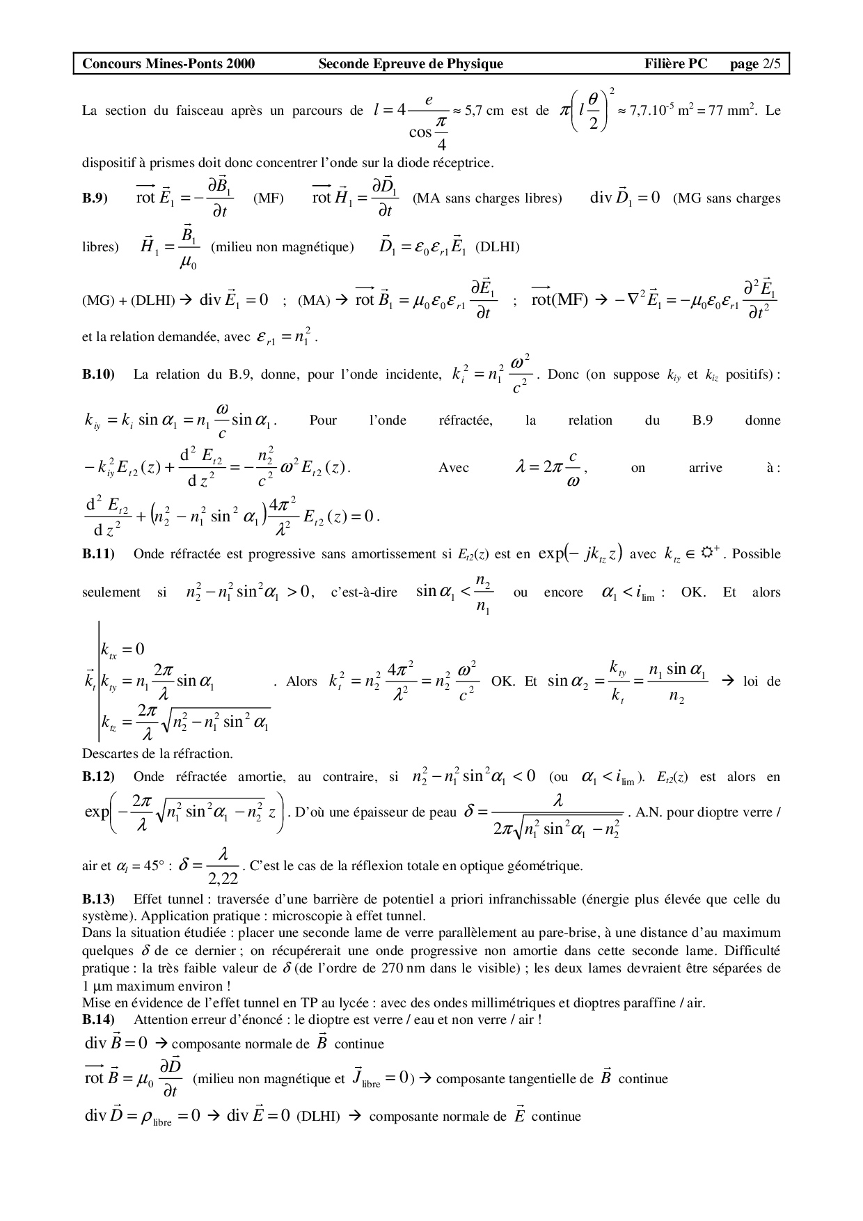 Mines-Ponts PC 2000 Physique 2 Corrigé