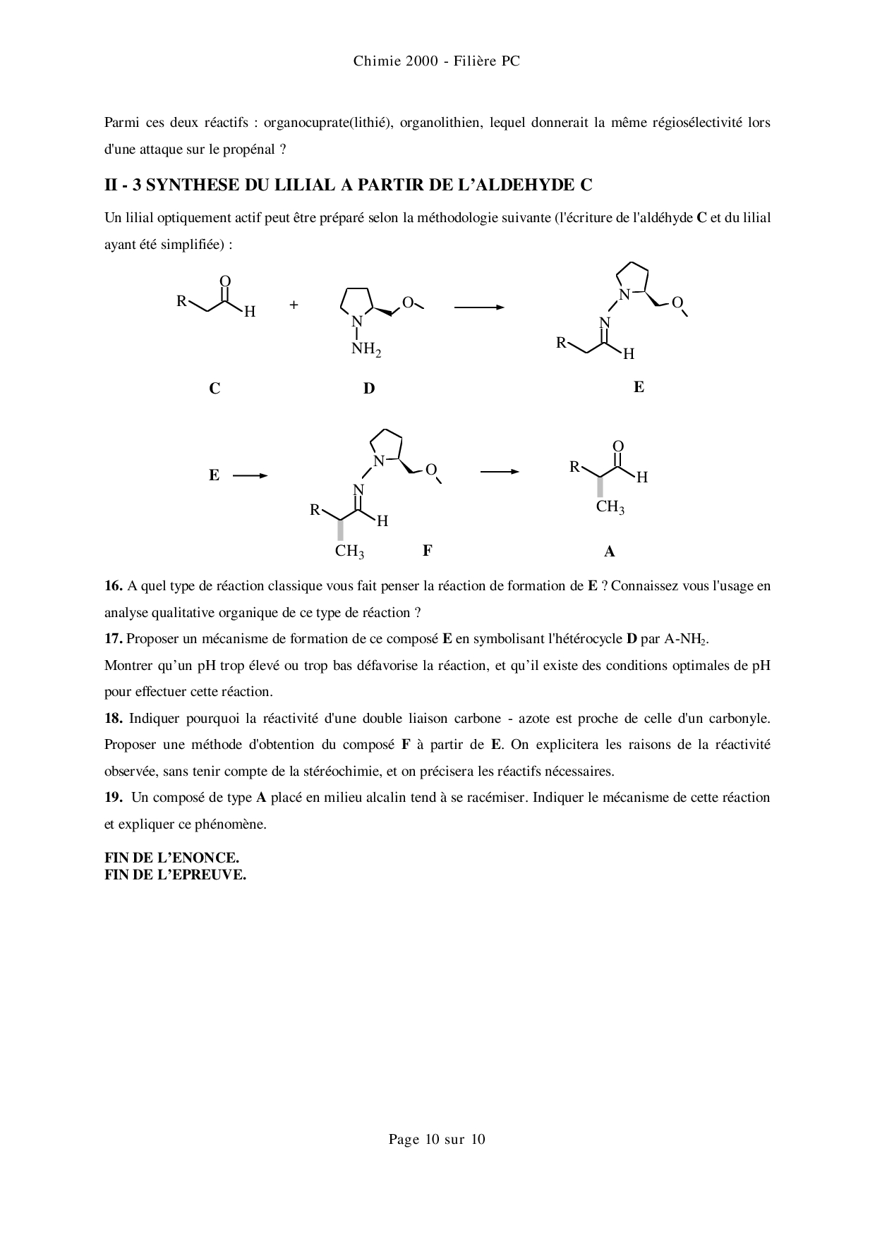 Mines-Ponts PC 2000 Chimie Enoncé