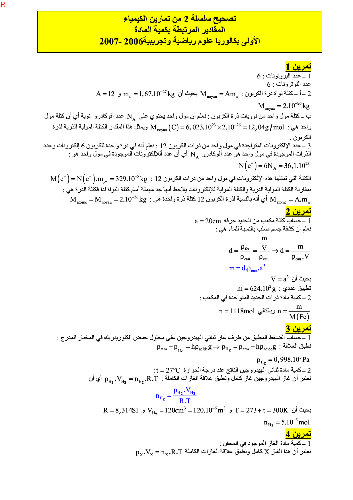 القياس في الكيمياء - تصحيح سلسلة التمارين 2