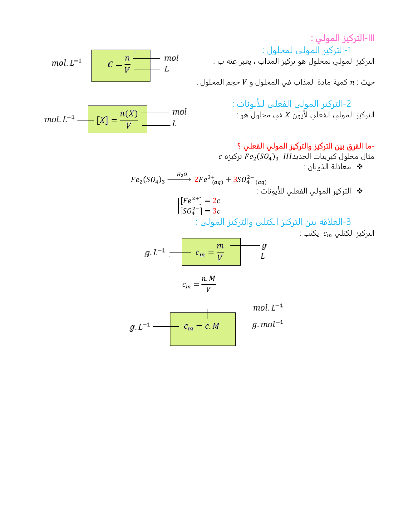 التركيز والمحاليل الإلكتروليتية - الدرس 1