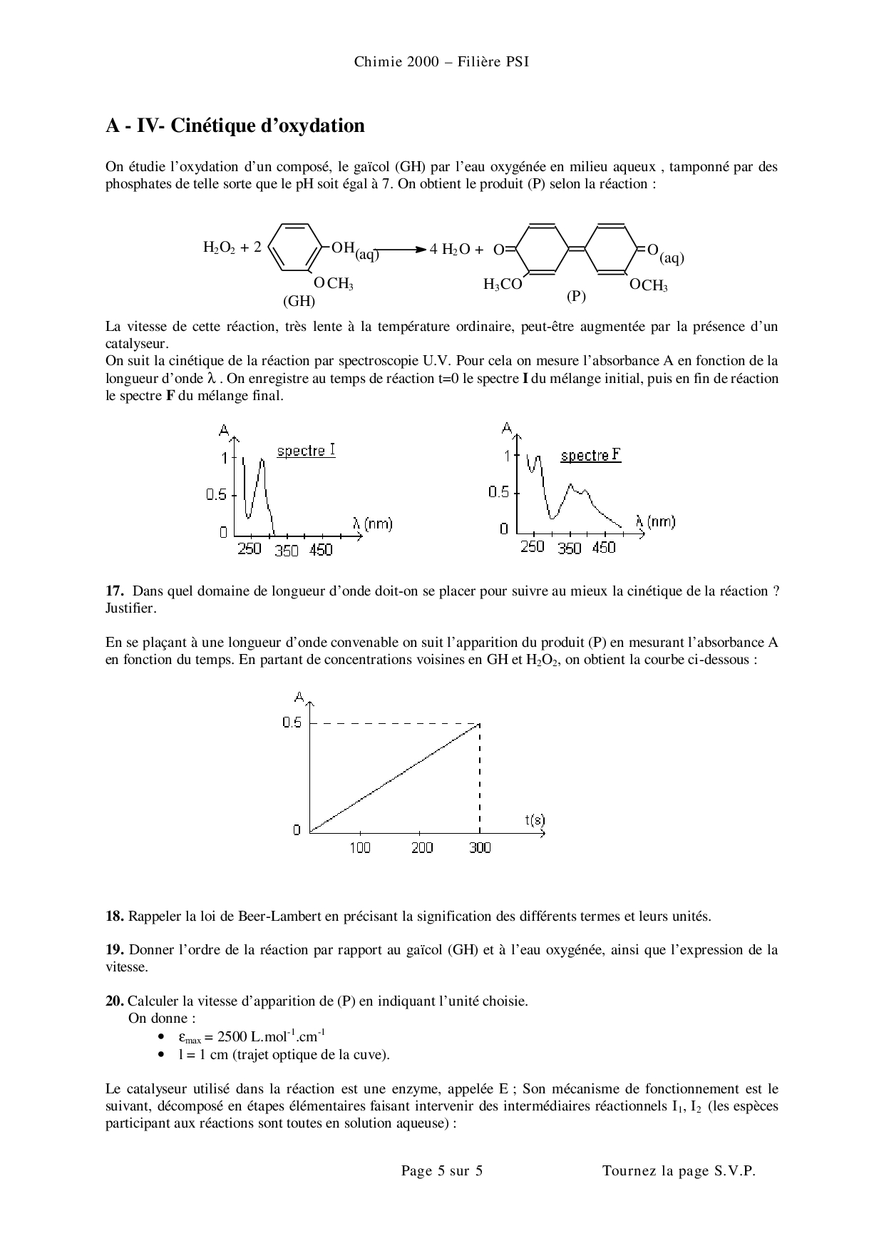 Mines-Ponts PSI 2000 Chimie Enoncé