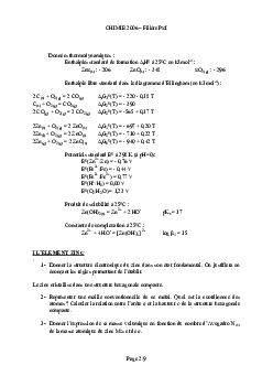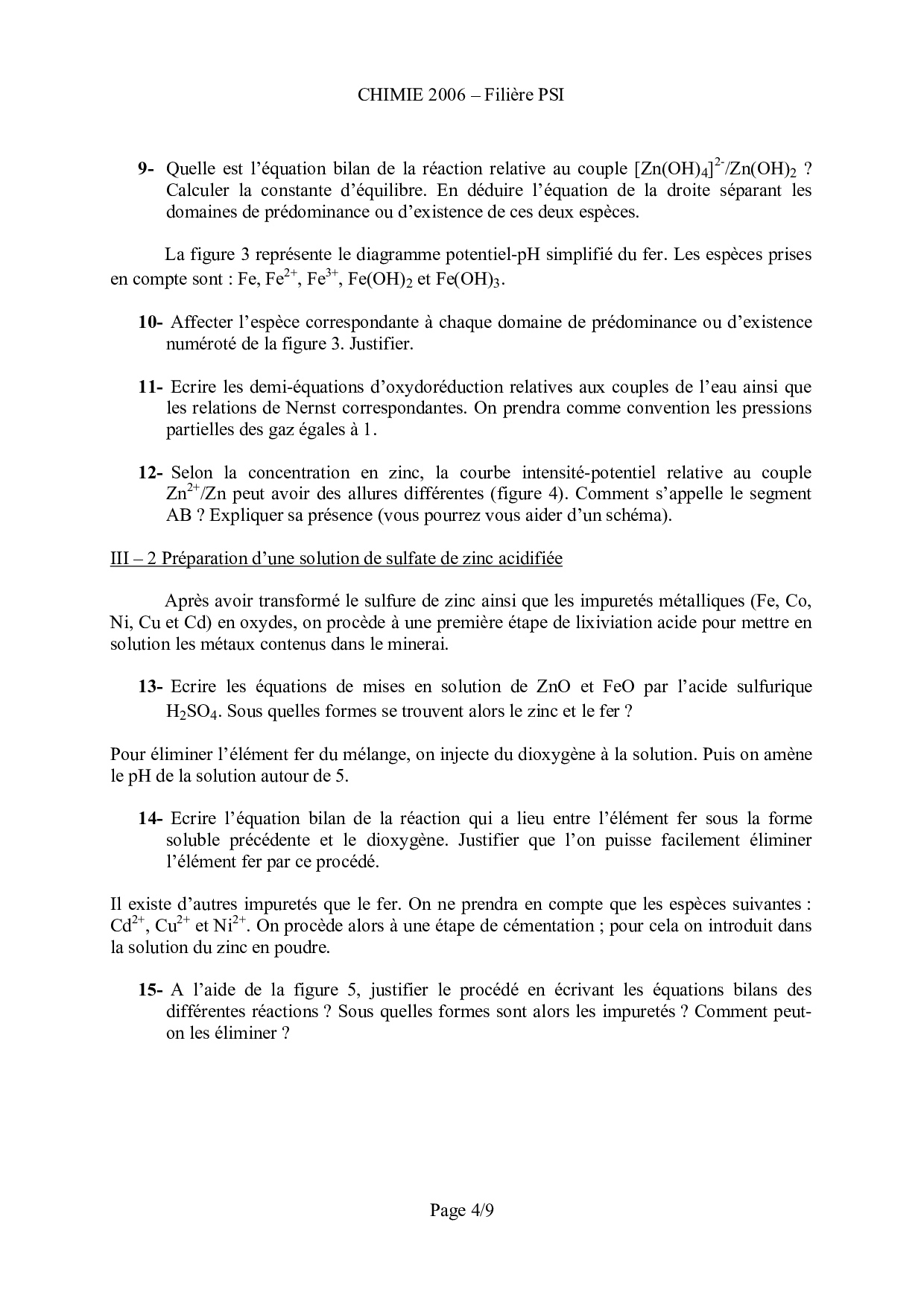 Mines-Ponts PSI 2006 Chimie Enoncé