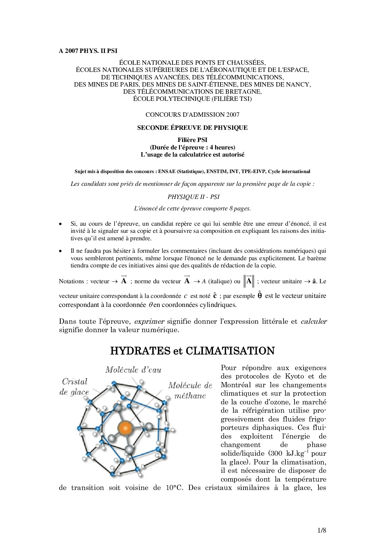 Concours Physique et Chimie PSI