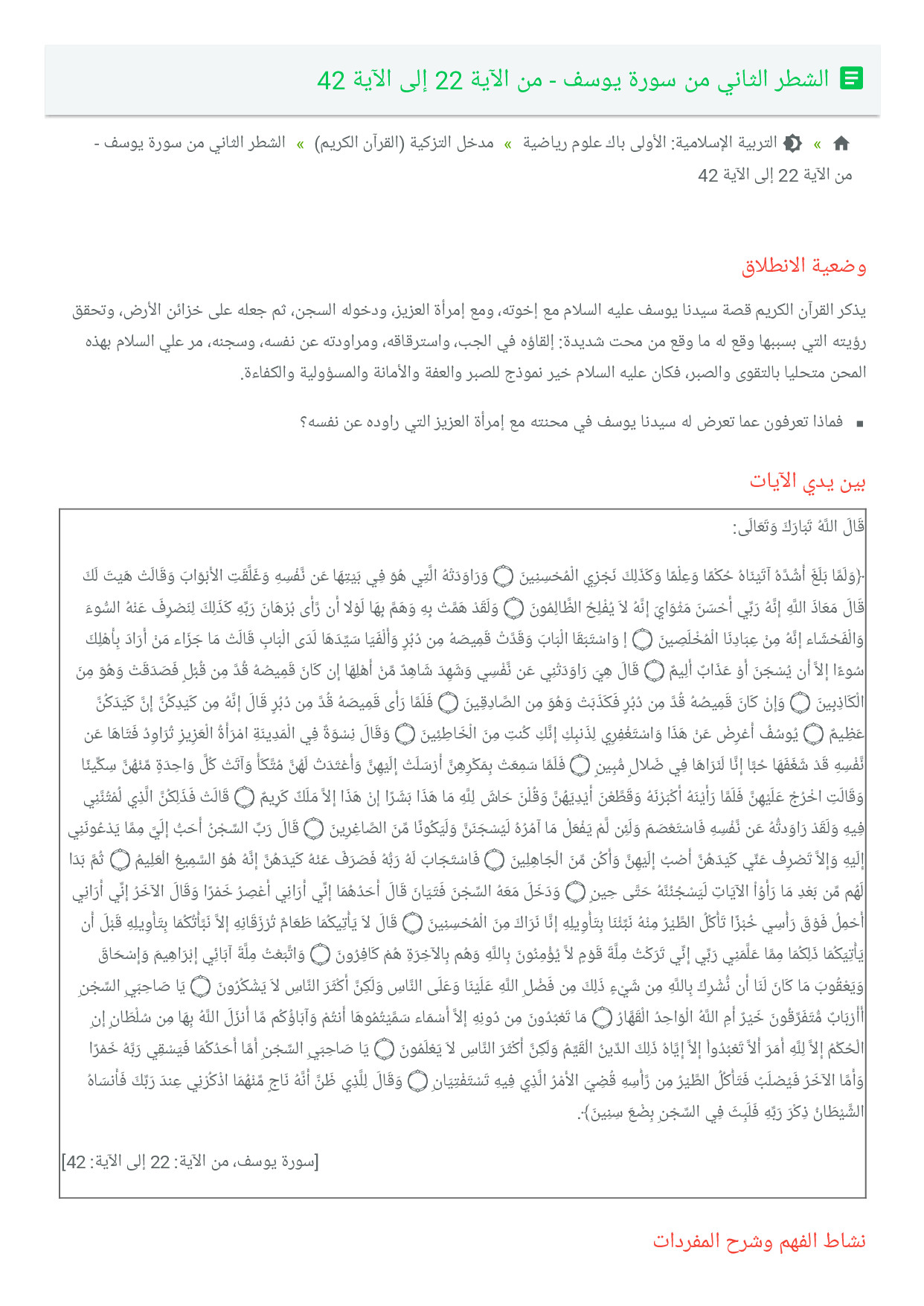الشطر الثاني من سورة يوسف - من الآية 22 إلى الآية 42