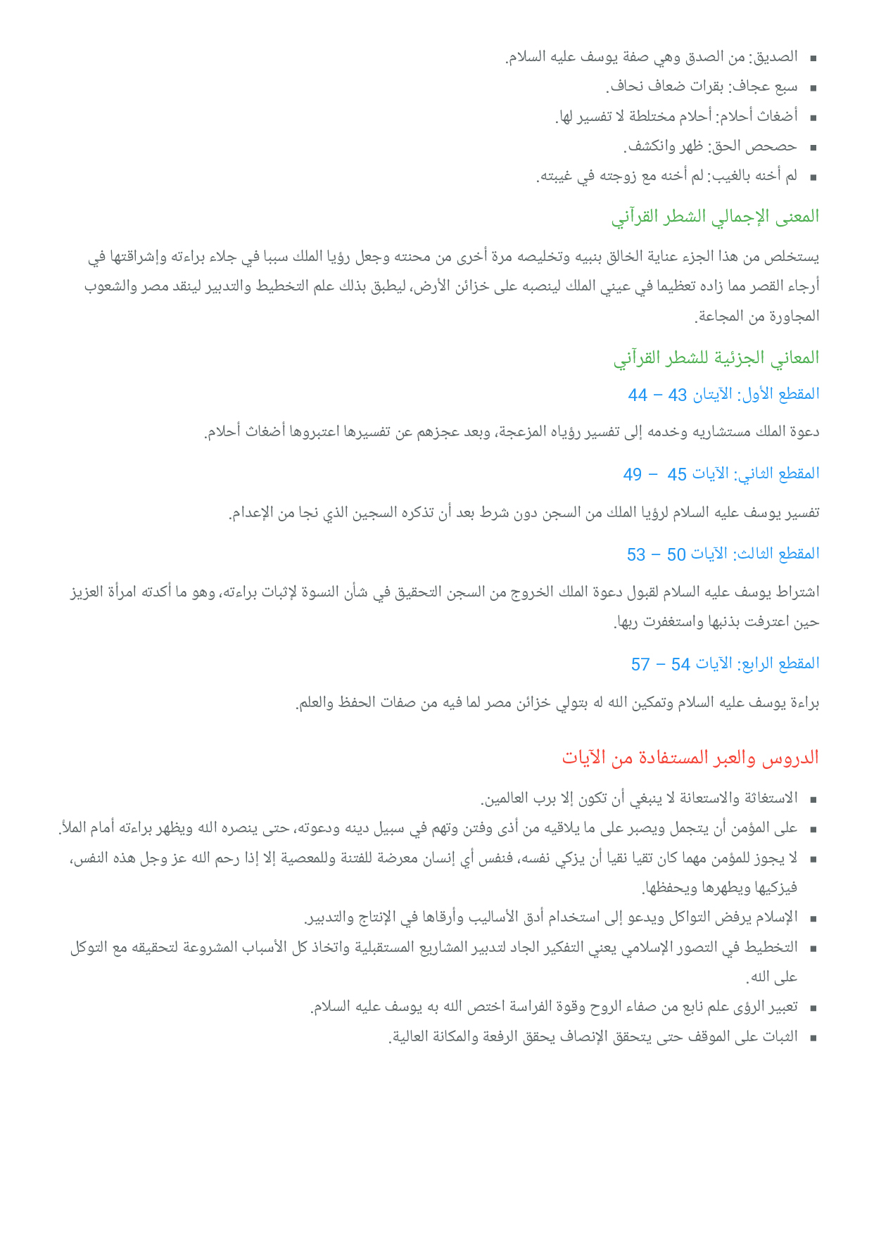 الشطر الثالث من سورة يوسف - من الآية 43 إلى الآية 57