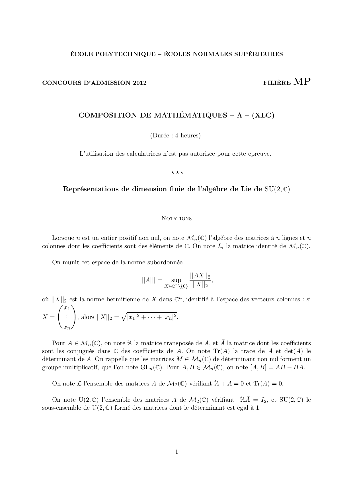 X-ENS MP 2012 Maths 1 Epreuve