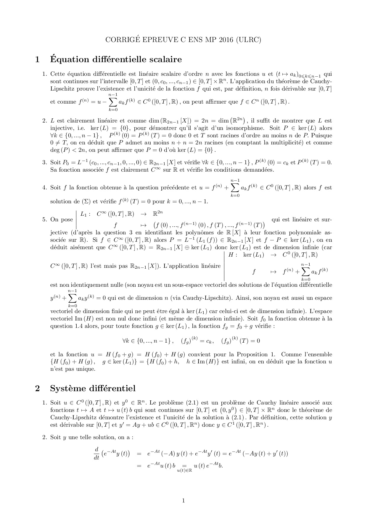 X-ENS MP 2016 Maths 3 Corrigé