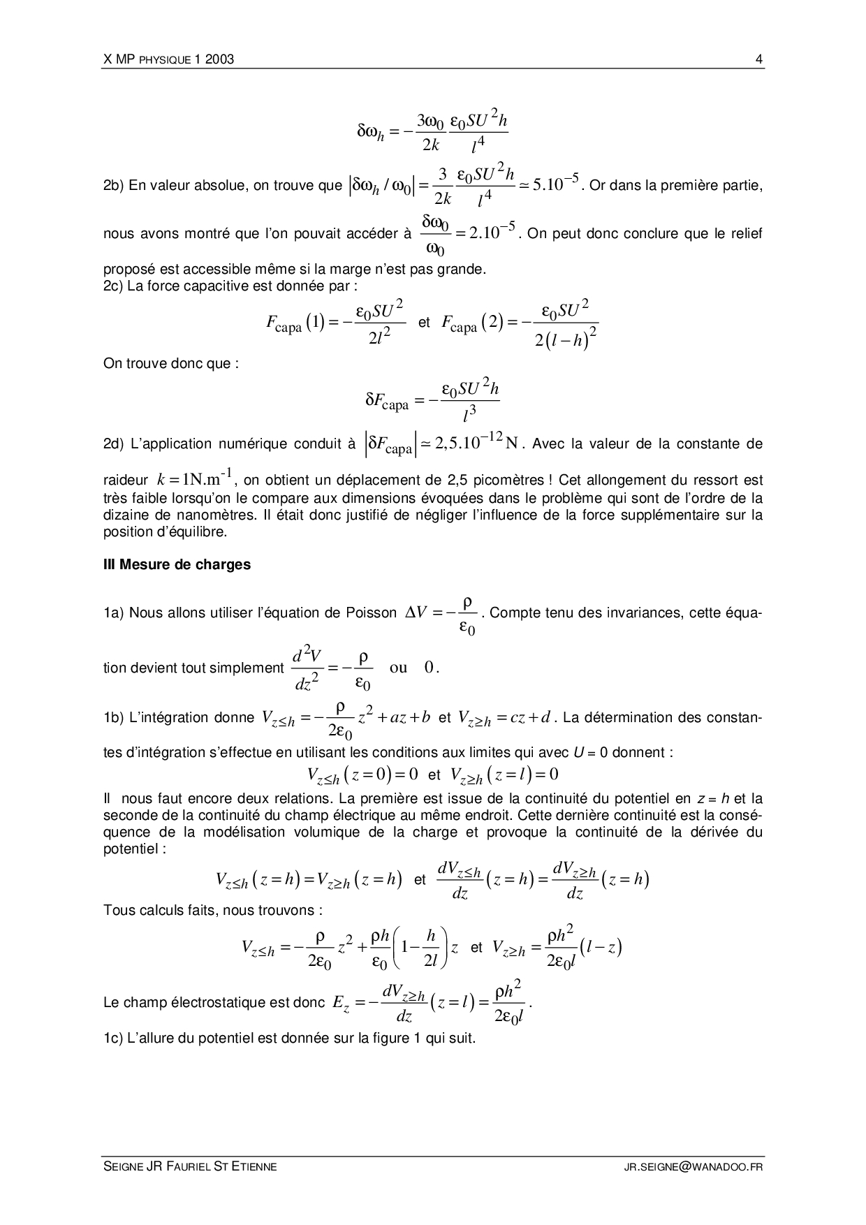 X-ENS MP 2003 Physique 1 Corrigé
