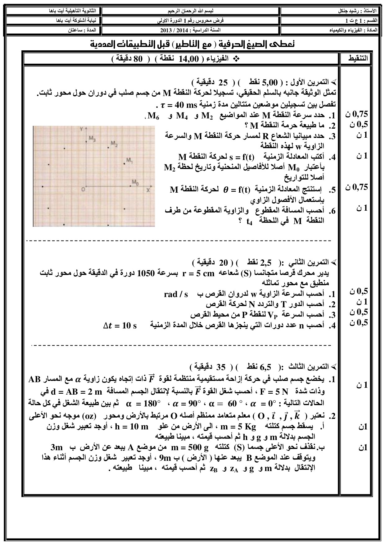 الفيزياء والكيمياء: الأولى باك علوم وتكنولوجيات ميكانيكية