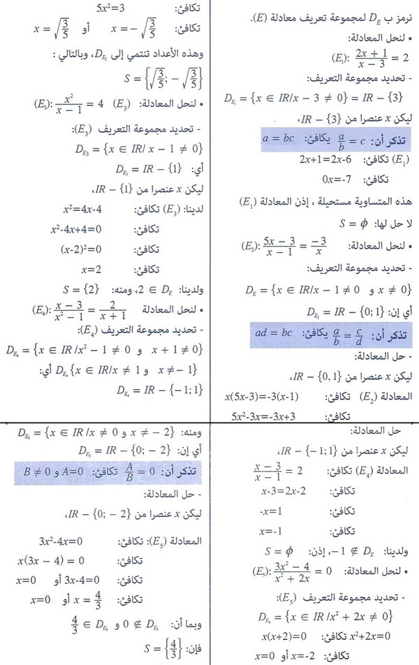 تمارين محلولة: المعادلات والمتراجحات والنظمات