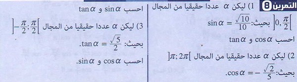 تمارين محلولة: قواعد في الحساب المثلثي
