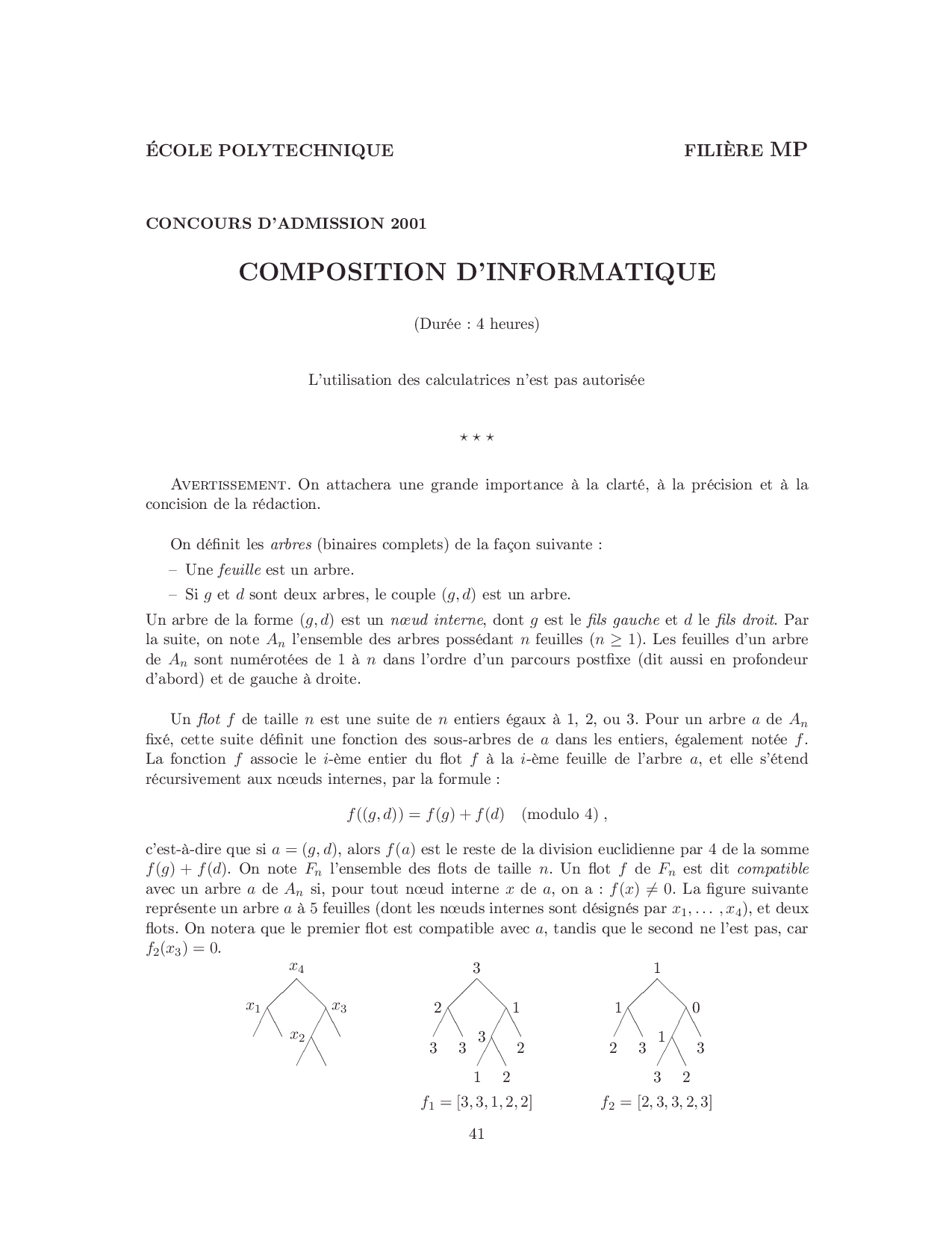 X-ENS informatique 2001 MP Epreuve