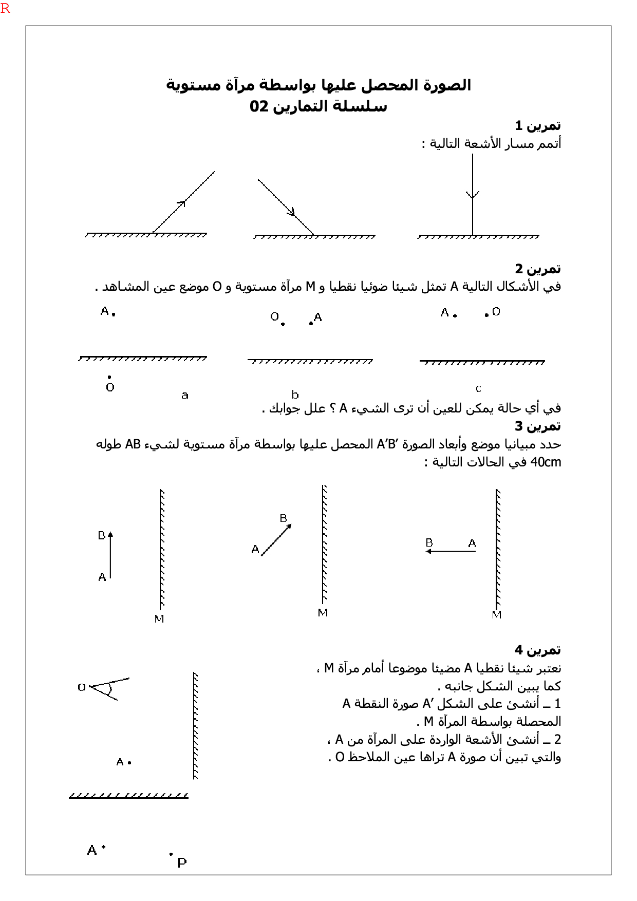 الصور المحصل عليها بواسطة مرآة مستوية - تمارين غير محلولة 1