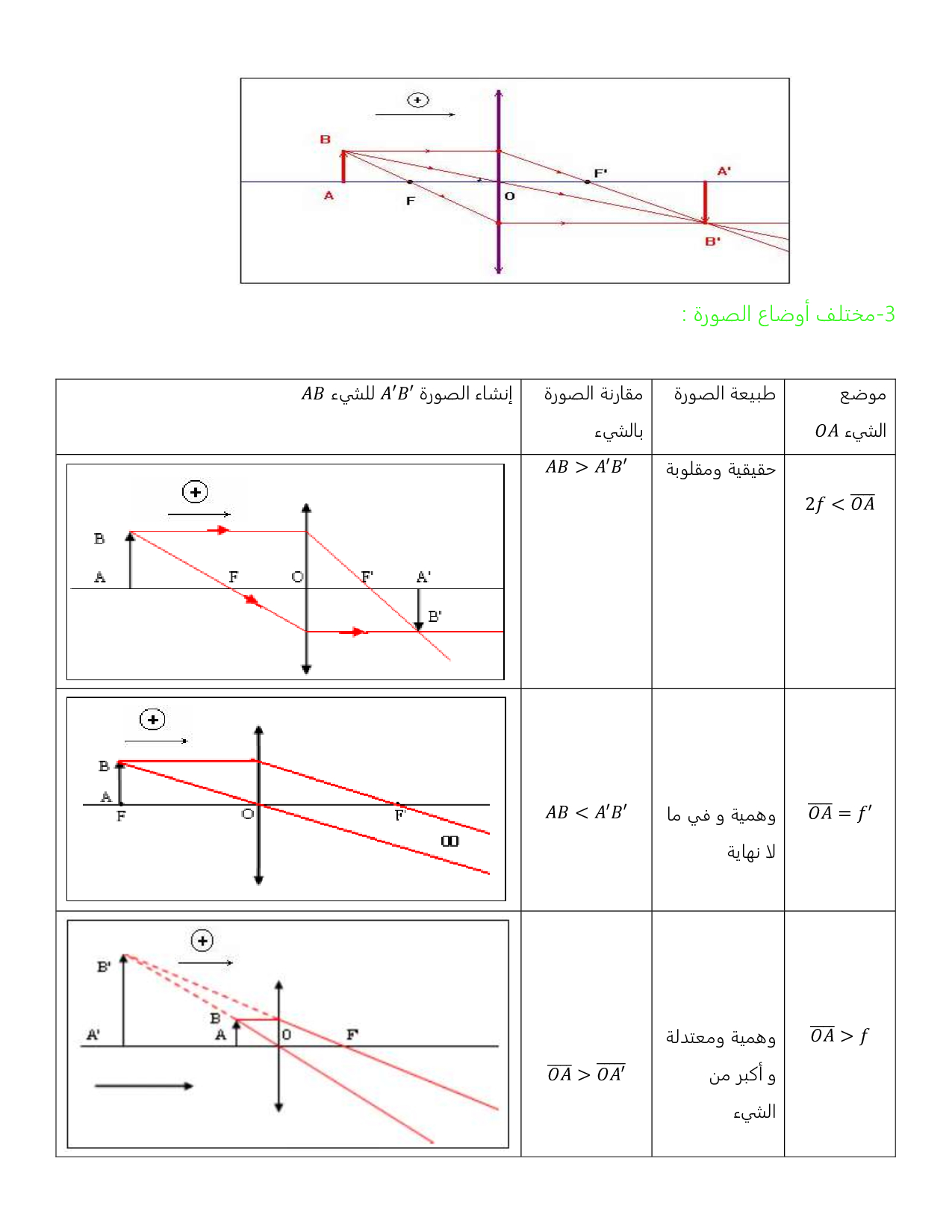 الصور المحصل عليها بواسطة عدسة رقيقة مجمعة - الدرس 1
