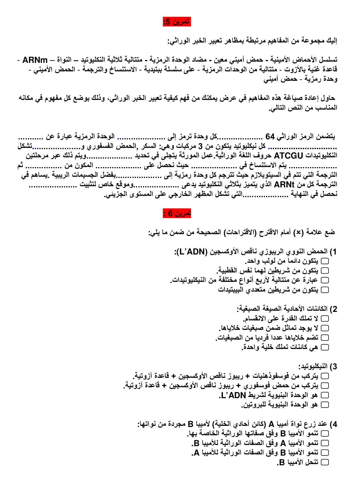 طبيعة الخبر الوراثي والية تعبيره - الهندسة الوراثية - سلسلة التمارين 1