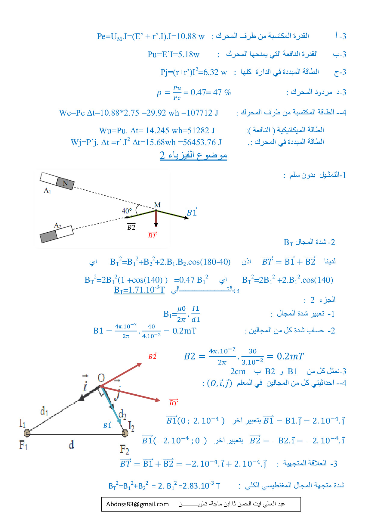 الفرض 1 نموذج 3 - الفيزياء والكيمياء أولى باك علوم تجريبية الدورة الثانية (التصحيح)