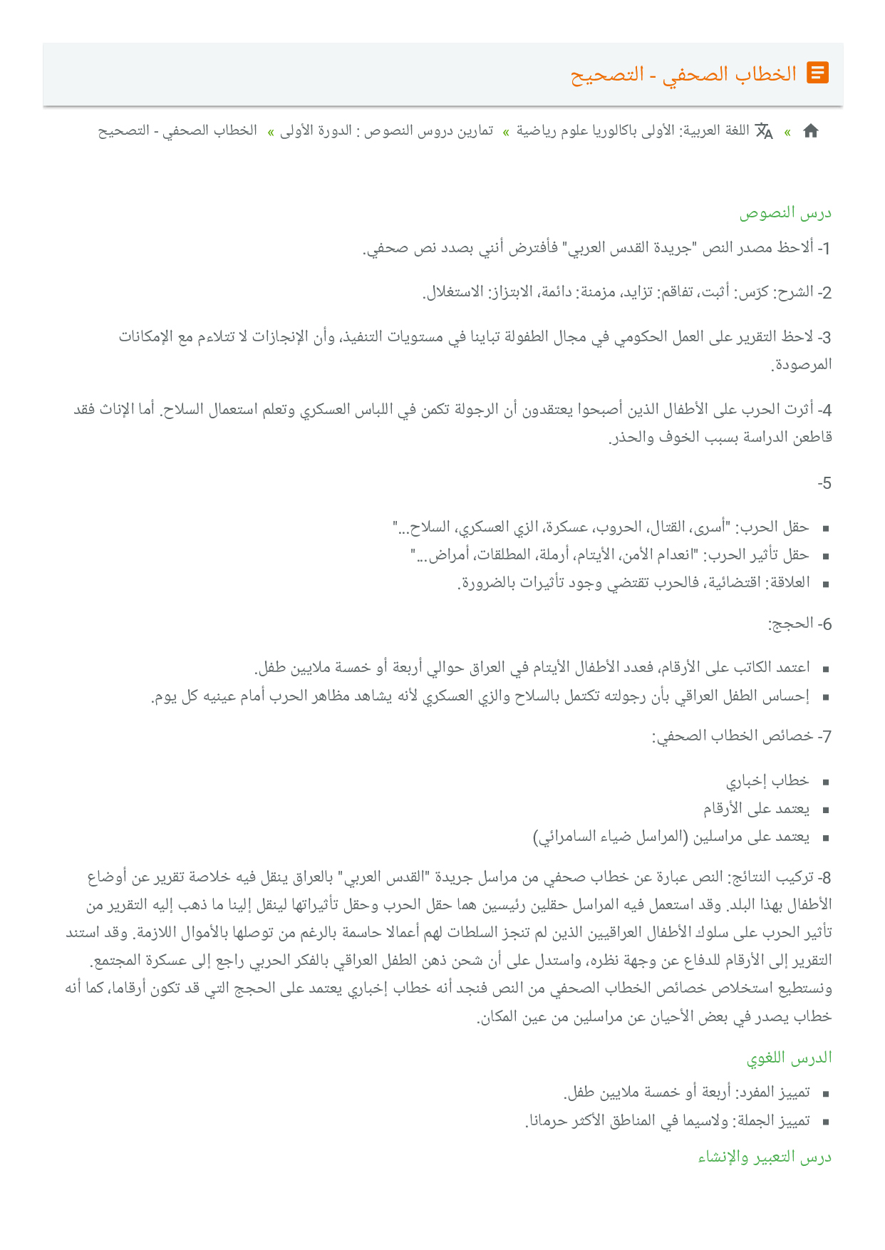 اللغة العربية: الأولى باكالوريا علوم رياضية