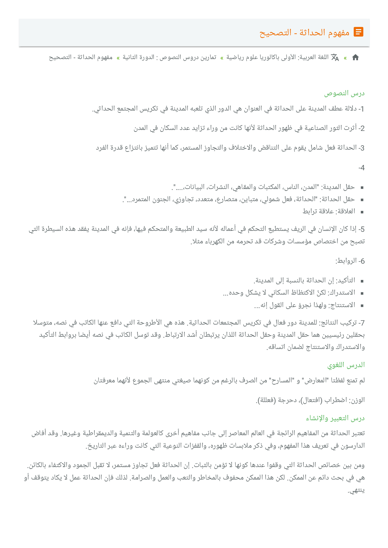 اللغة العربية: الأولى باكالوريا علوم رياضية