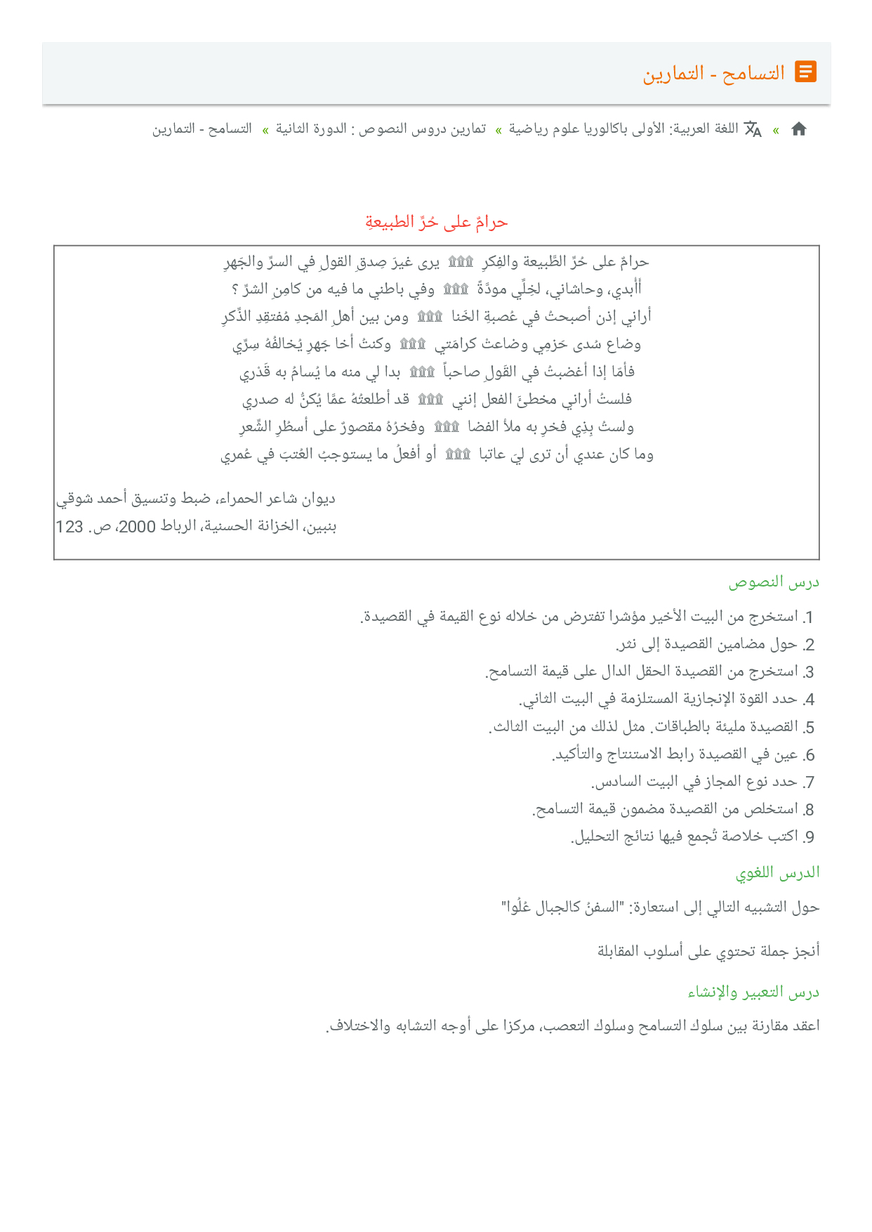 اللغة العربية: الأولى باكالوريا علوم رياضية