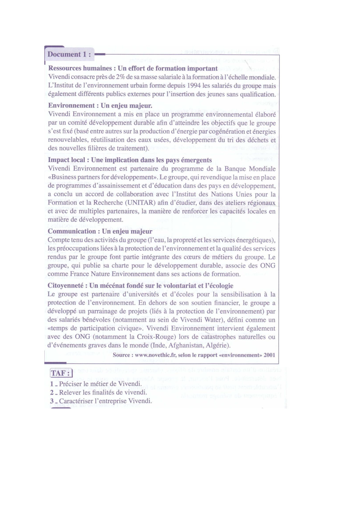 2 Bac Eco-SGC - Exercice 1 (Stratégie et croissance)