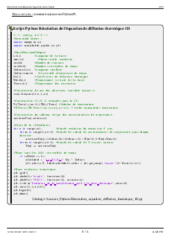 Résolution numérique de l’équation de la diffusion thermique - Cours