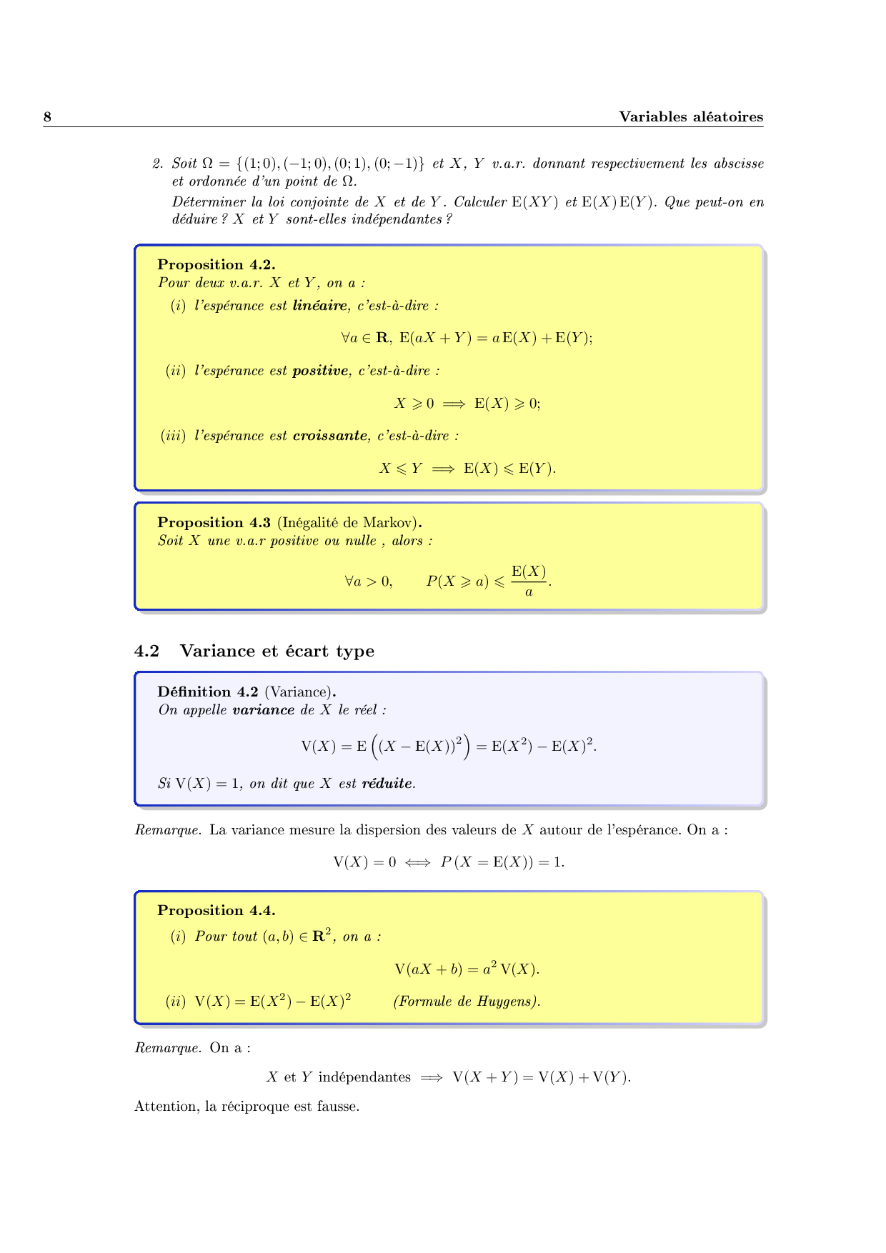 Variables aléatoires : Cours