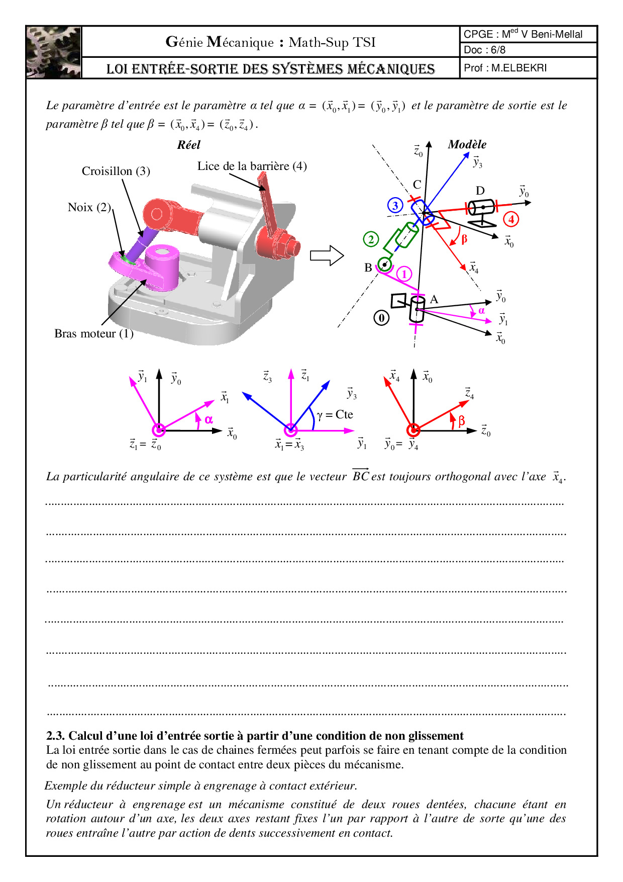 Cours 085 - Loi entrée sortie des systèmes mécaniques