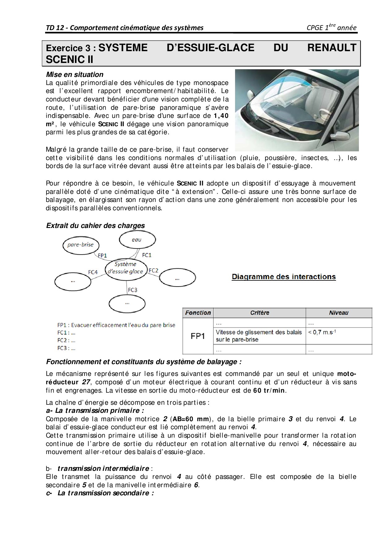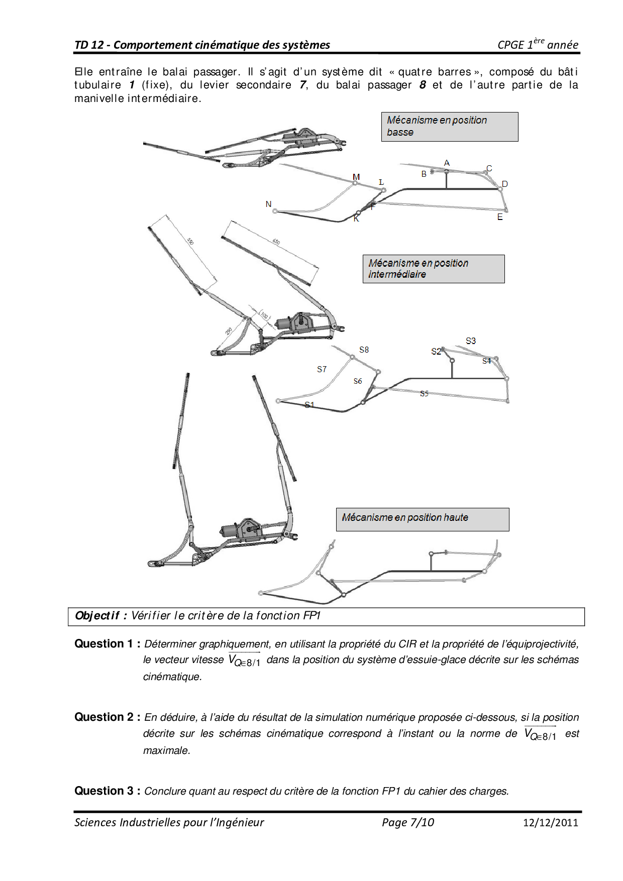 TD 12 - Comportement cinématique des systèmes