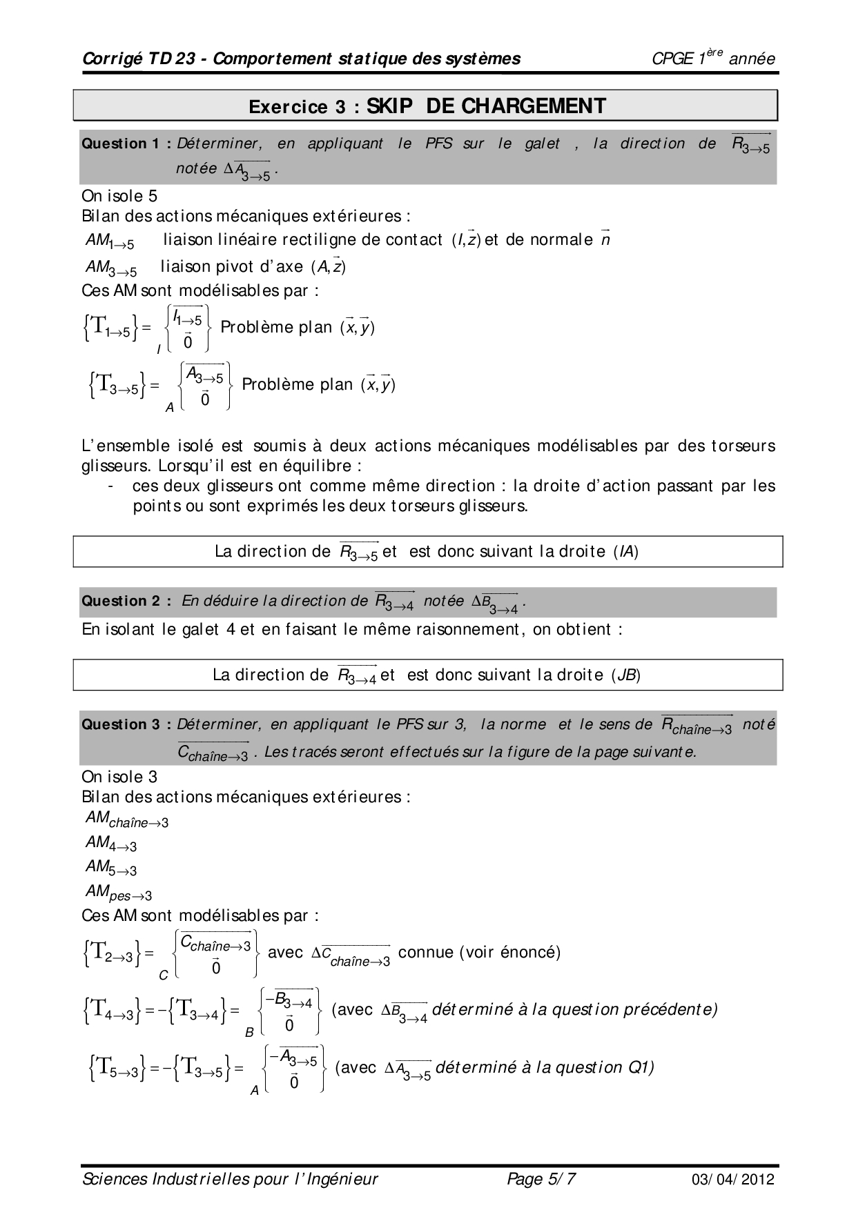 TD 23 corrigé - Comportement statique des systèmes