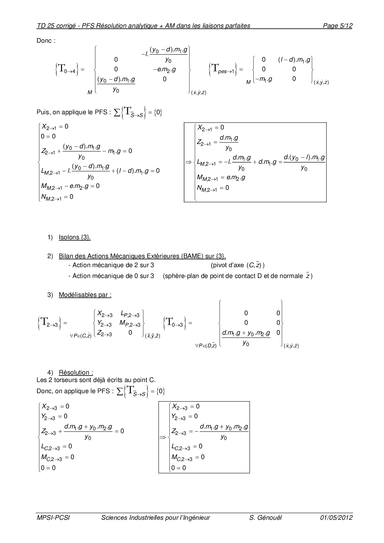TD 25 corrigé - PFS Résolution analytique + AM dans les liaisons parfaites