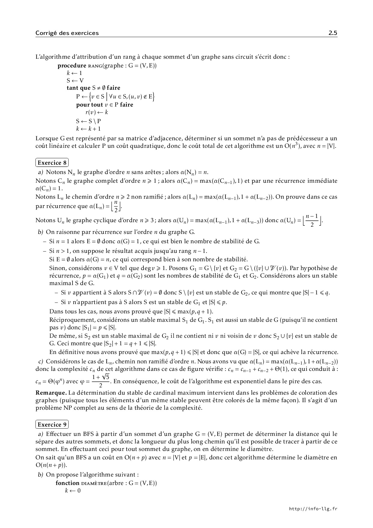 Graphes - Corrigé des exercices