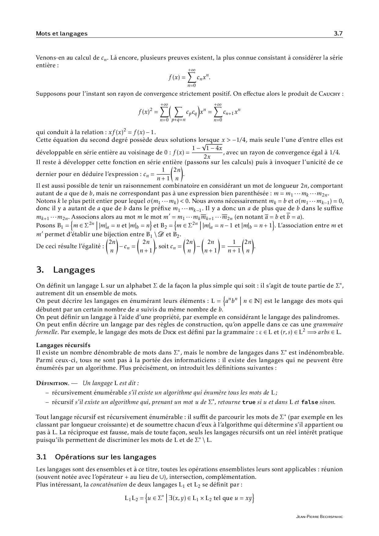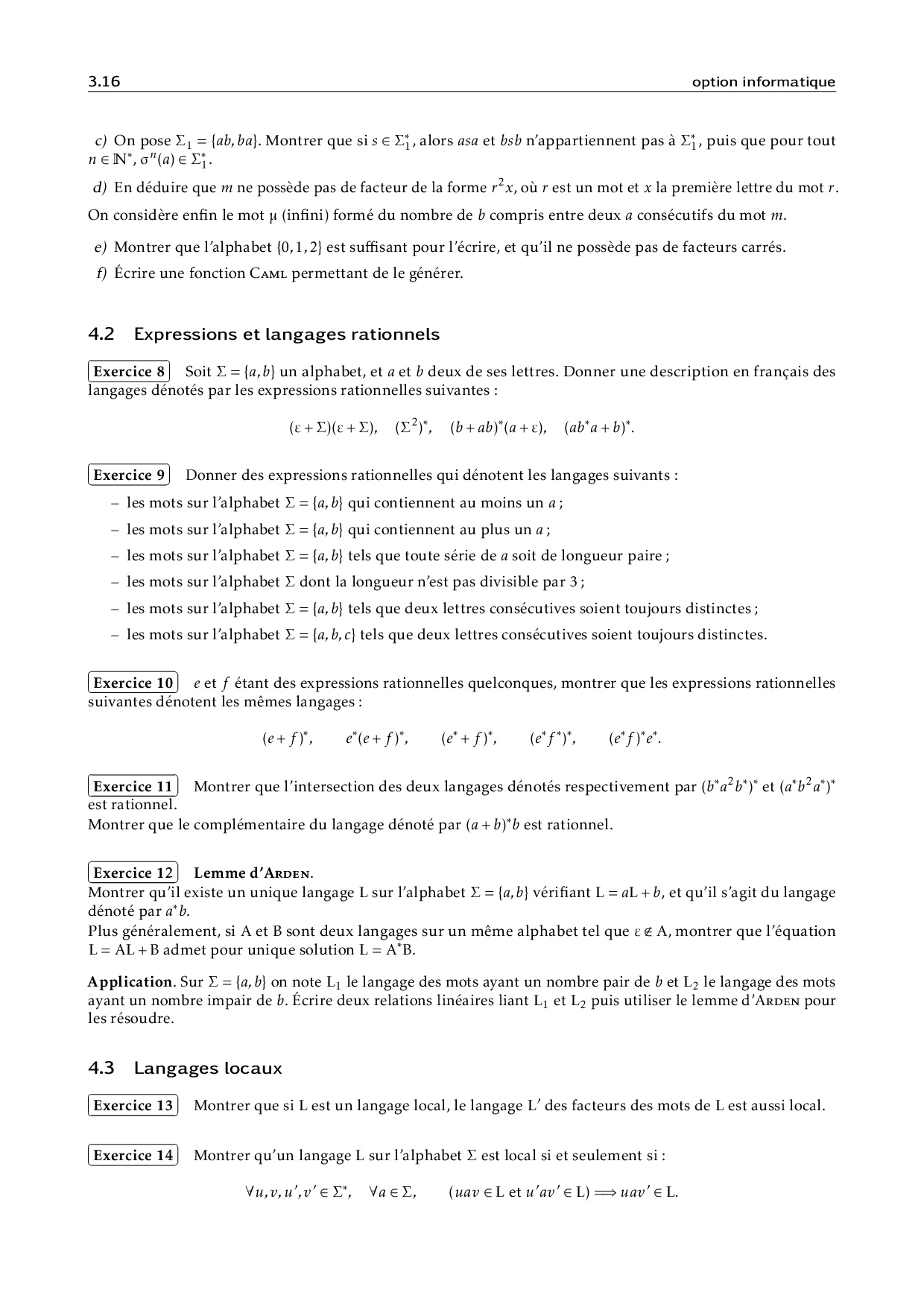 Mots et langages - Cours et exercices