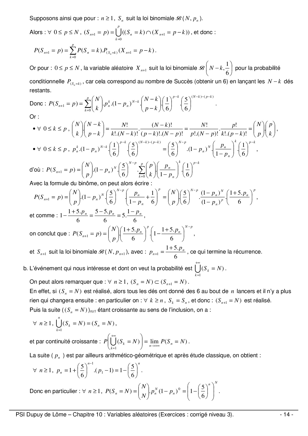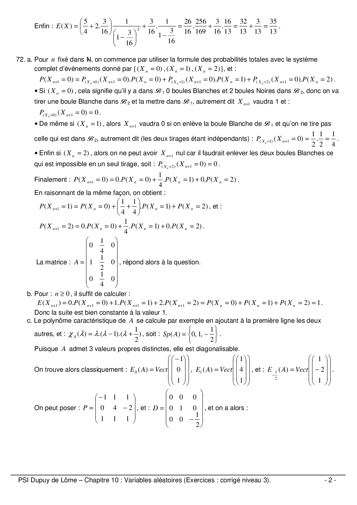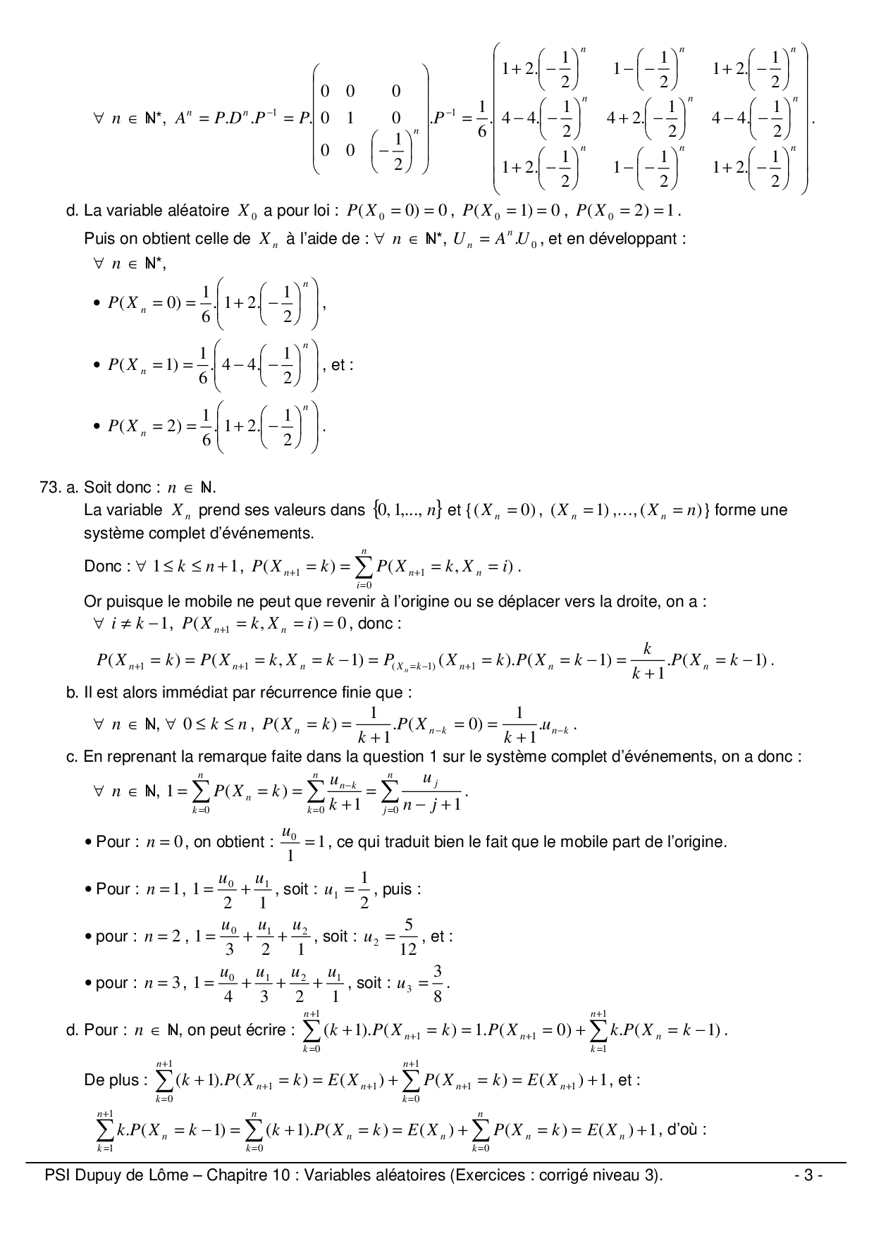 Variables aléatoires - Corrigé niveau 3