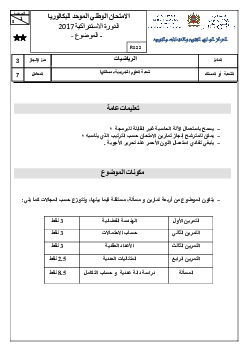 الرياضيات للشعب العلمية والتكنولوجية 2017 الدورة الإستدراكية - الموضوع