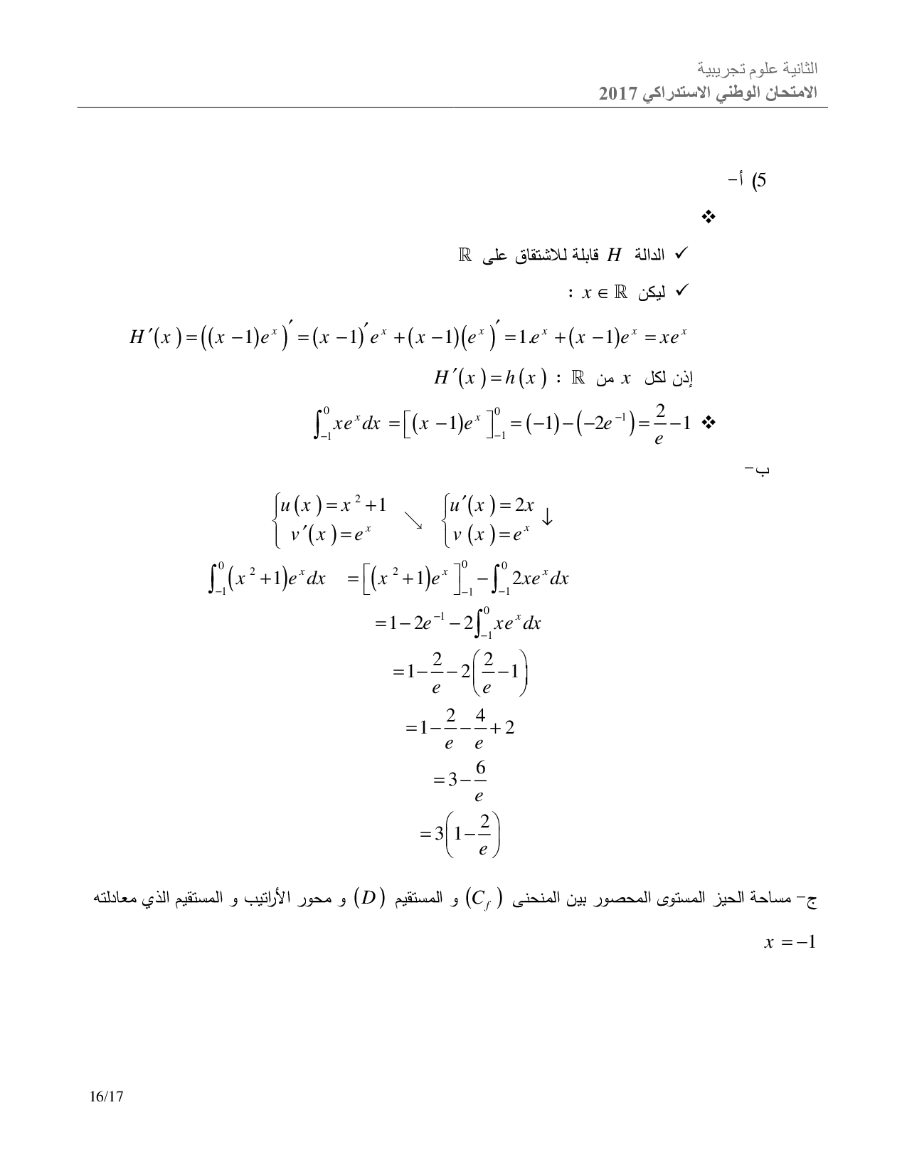 الرياضيات للشعب العلمية والتكنولوجية 2017 الدورة الإستدراكية - التصحيح