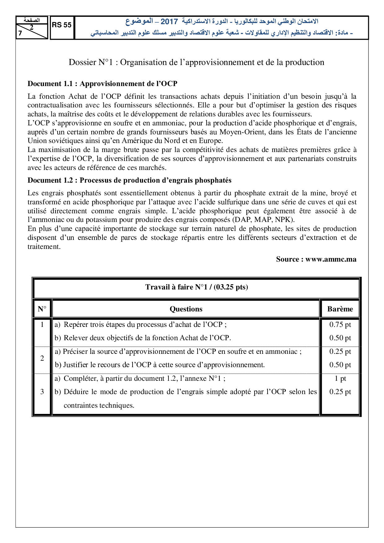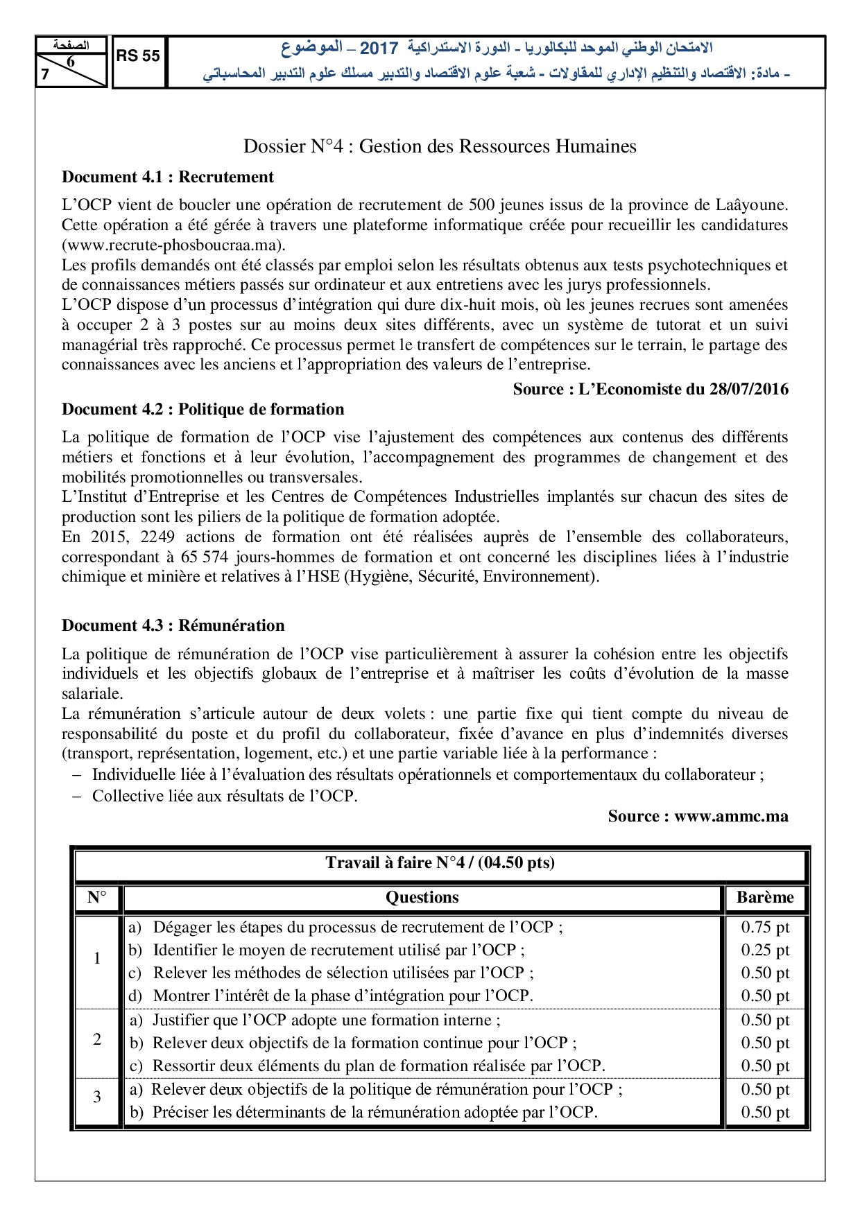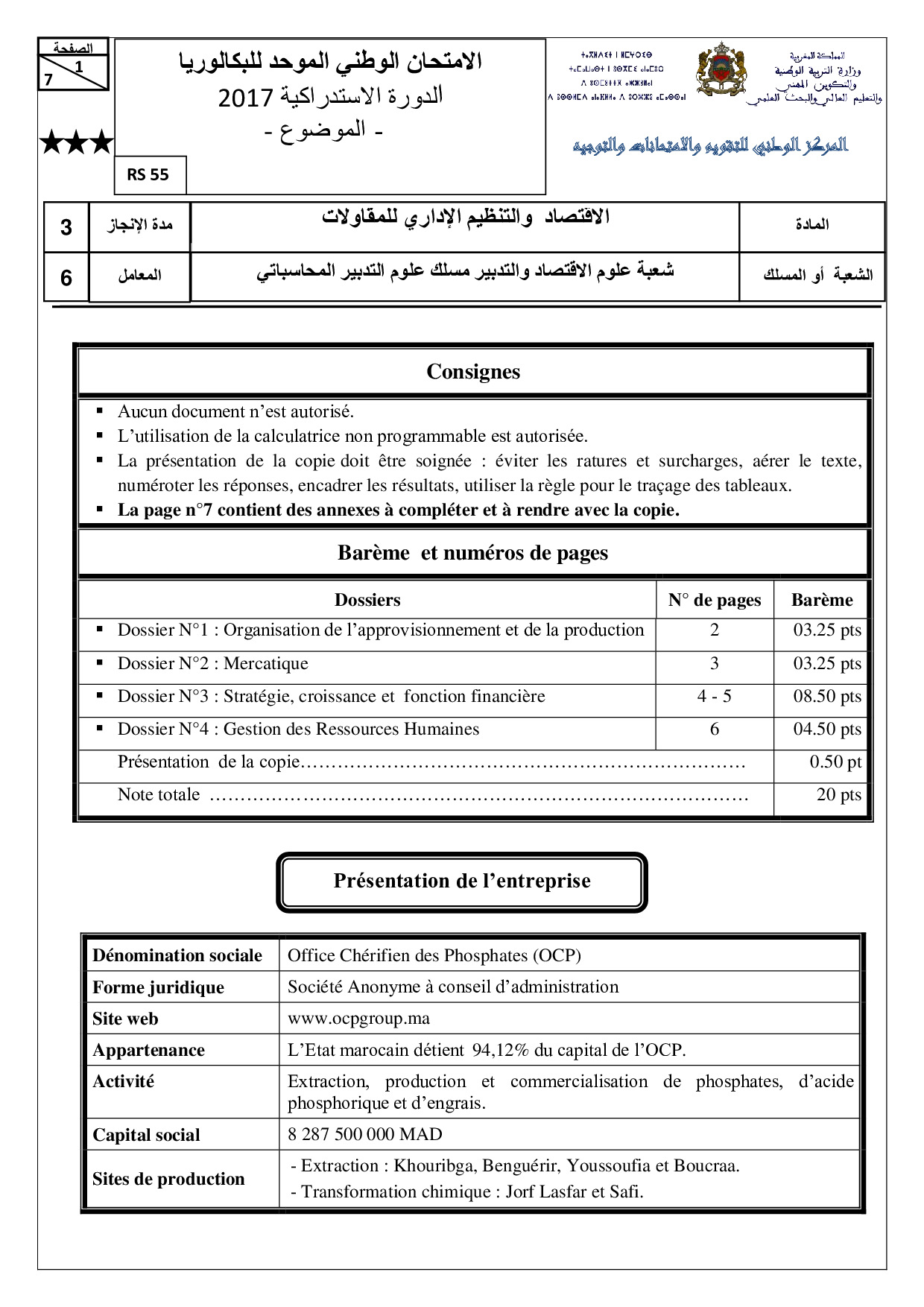 Examen EOAE 2 Bac SGC 2017 Session Rattrapage - Sujet