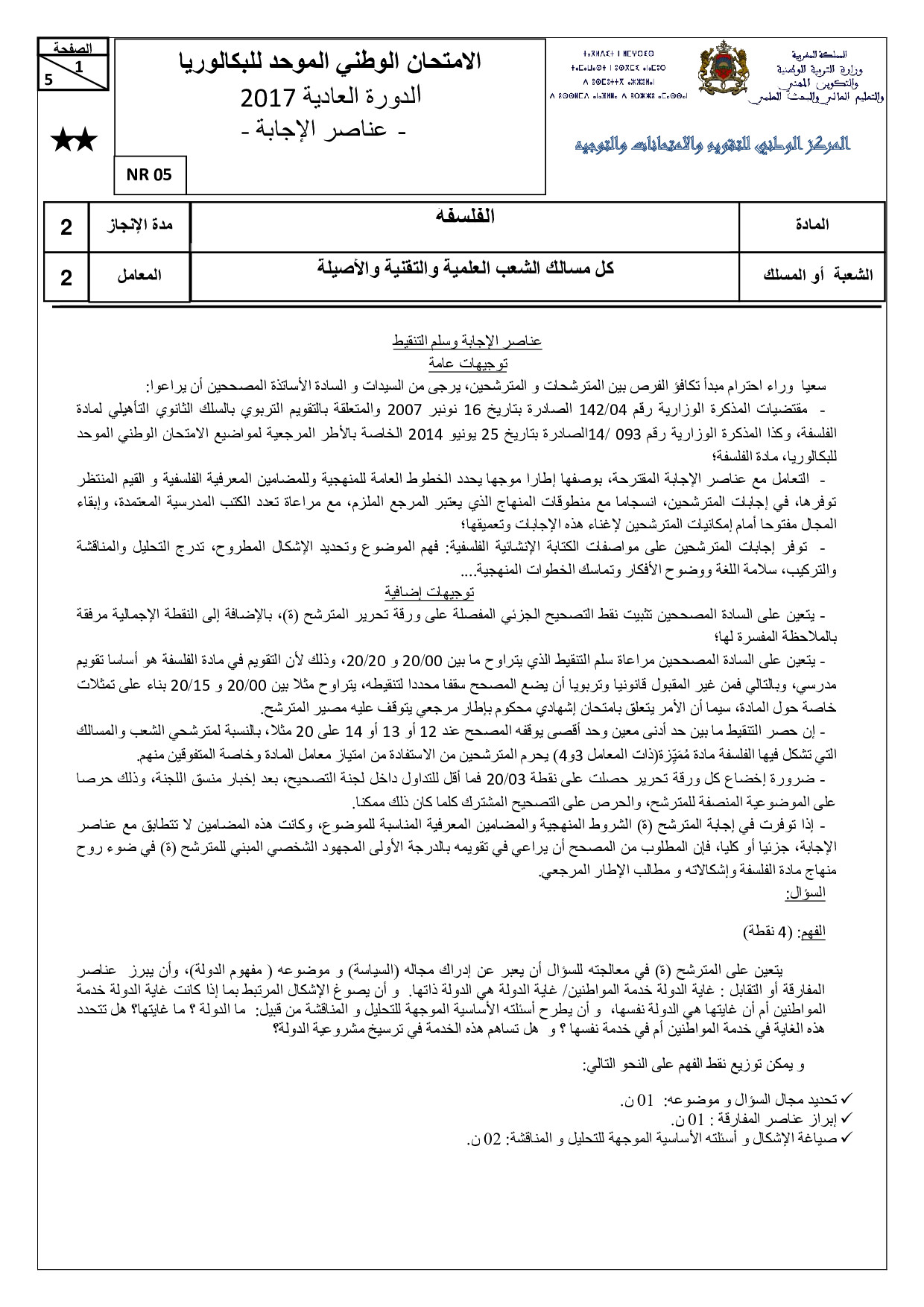 الفلسفة للشعب العلمية والتقنية 2017 الدورة العادية - التصحيح