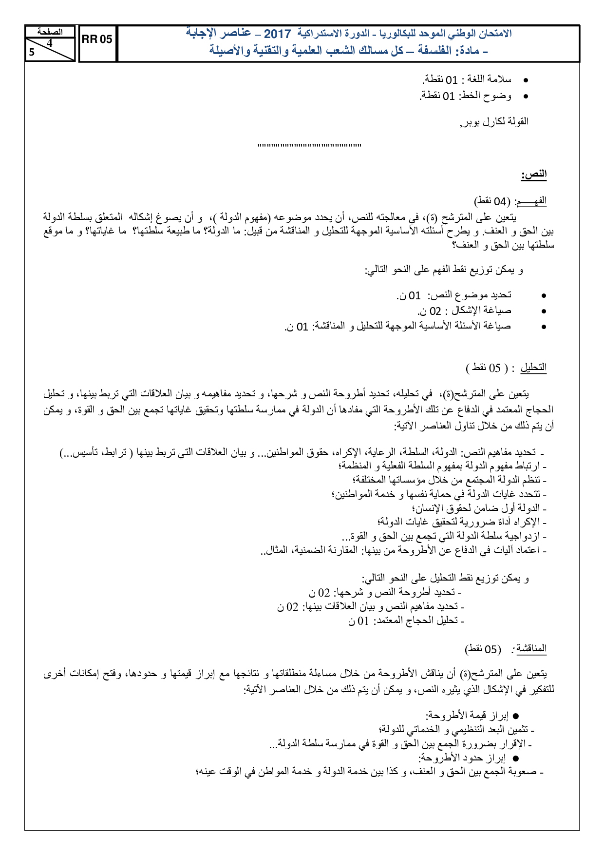 الفلسفة للشعب العلمية والتقنية 2017 الدورة الإستدراكية - التصحيح